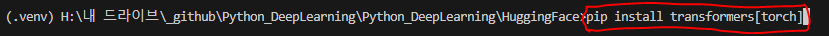HuggingFace 의 transformers 라이브러리와, 그에 맞는 torch 라이브러리를 동시에 설치
