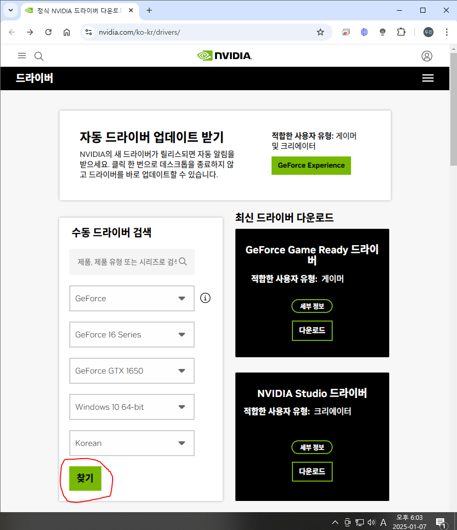 https://www.nvidia.com/ko-kr/drivers/
