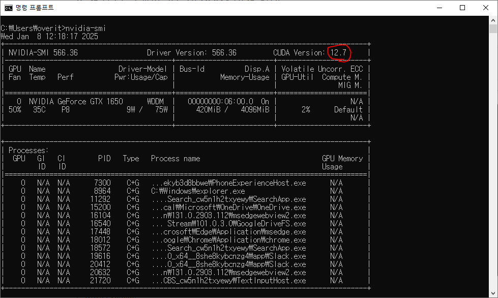 3. 설치 된 그래픽 카드의 CUDA 버전 확인
