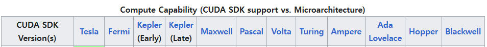 위의 사이트에 접속하면 CUDA 버전에 맞는 Compute capability 확인 가능하다.