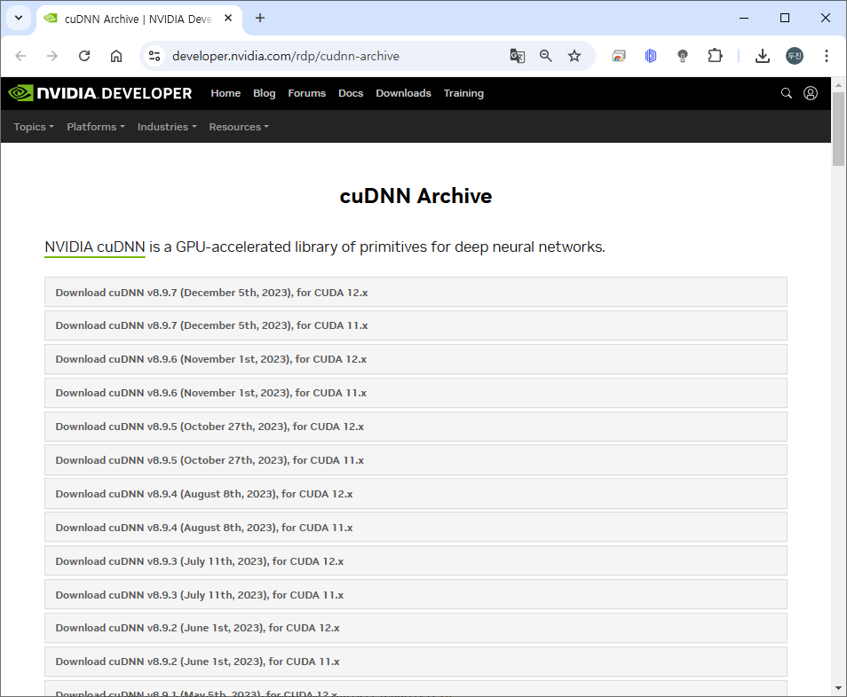 ※ NVIDIA developer에 가입 후 download 가능합니다.
