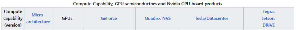 추가참고 : https://developer.nvidia.com/cuda-gpus