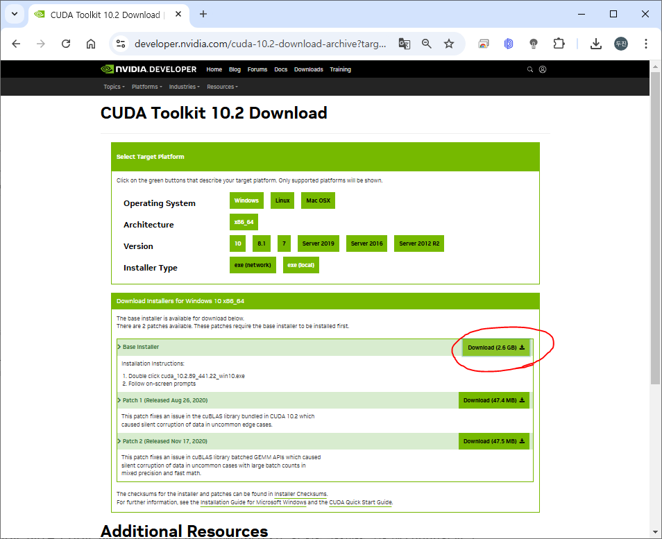 10.2 에 맞는 아래의 버전 다운로드