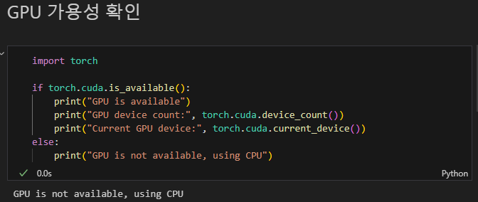 설치 후, GPU 사용여부 확인