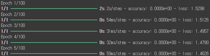 # 출력값 : 5개, 활성화함수 : 'softmax'