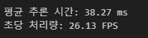 print(f'초당 처리량: {1000/avg_time:.2f} FPS') # 초당 프레임 수(FPS) 출력